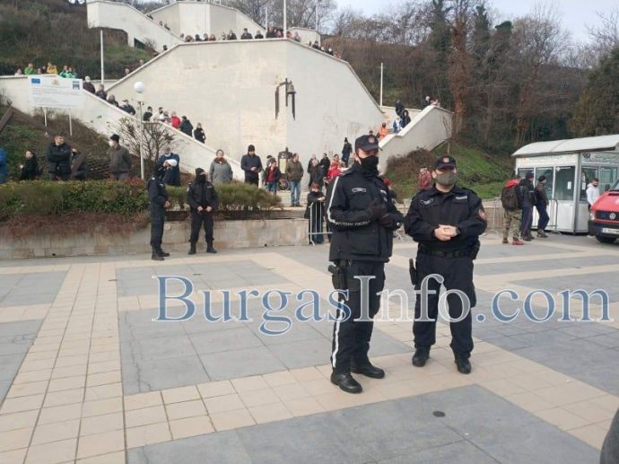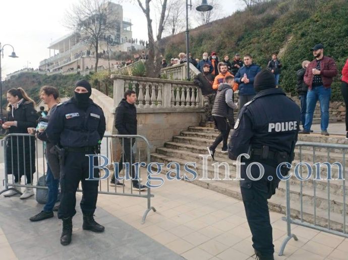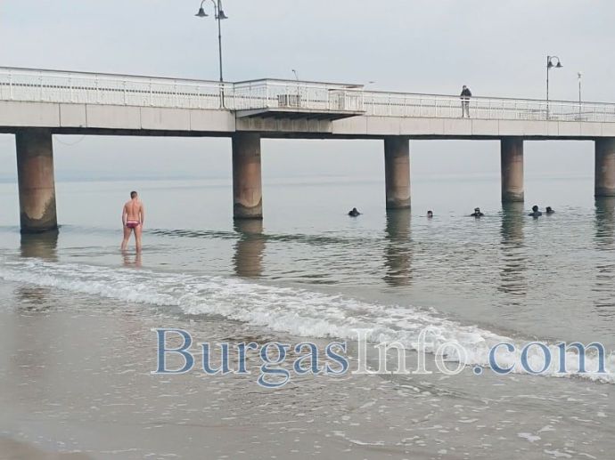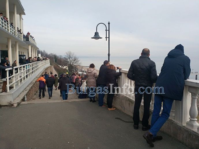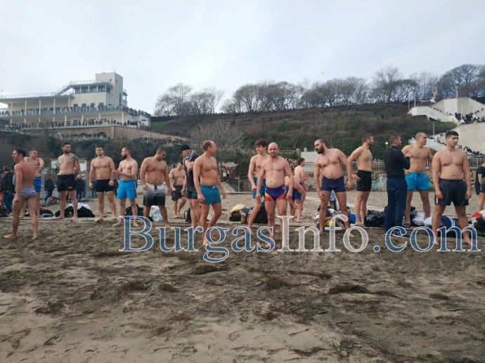 Тази година 54 храбри мъже ще влязат в студените води, за да опитат да спасят кръста на Богоявление в Бургас. Светото разпятие ще бъде хвърлено от брега, а заради съображенията за сигурност публика в близост не се допуска. Въпреки това на терасата и стълбите на Морското казино се събраха десетки жители на морския град, за да наблюдават ритуала.