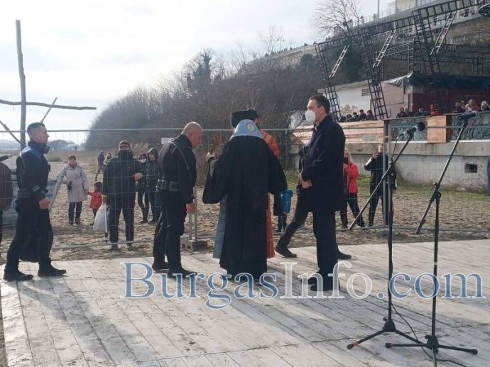 „Благодаря за разбирането за спазване мерките за беозпасност”, каза кметът Николов на бургазлии, които наблюдаваха ритуала от разстояние. Той поздрави всички участници.