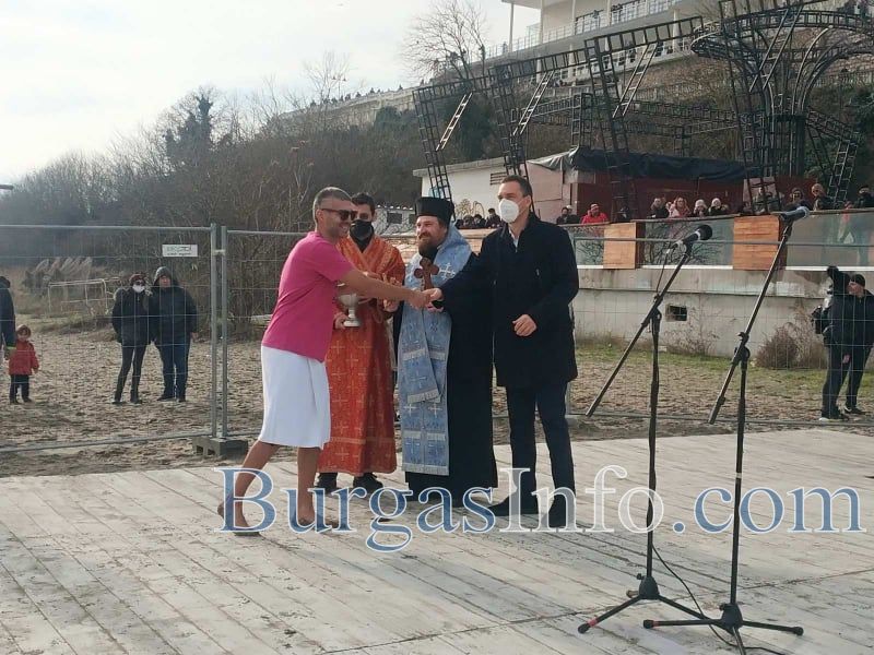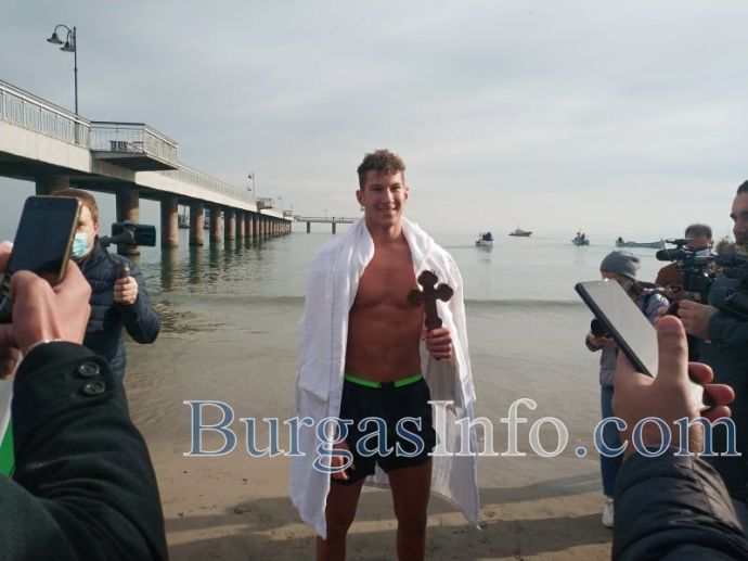 18-годишният ученик Иван Гайтанов от Италианската езикова гимназия в Бургас спаси светия кръст. Той се оказа най-бърз от всички общо 55 смелчаци, които влязоха в студените води и спазиха ритуала на Йордановден.