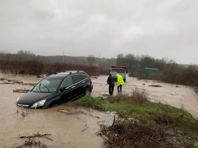 Дъждът затвори и пътя Бургас – Созопол. Кадрите са под хижа „Странджа”.