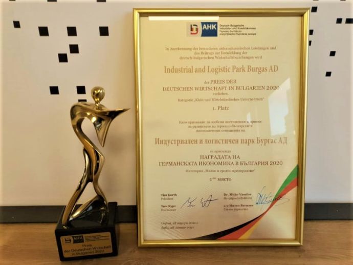 "Индустриален и логистичен парк Бургас" АД бе удостоен с Наградата на германската икономика в България в категорията за "Малко и средно предприятие". Тя се връчва от Германо-Българската индустриално-търговска камара.