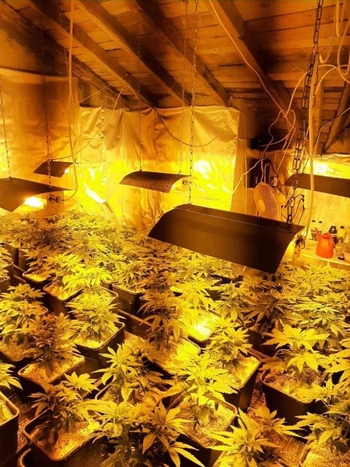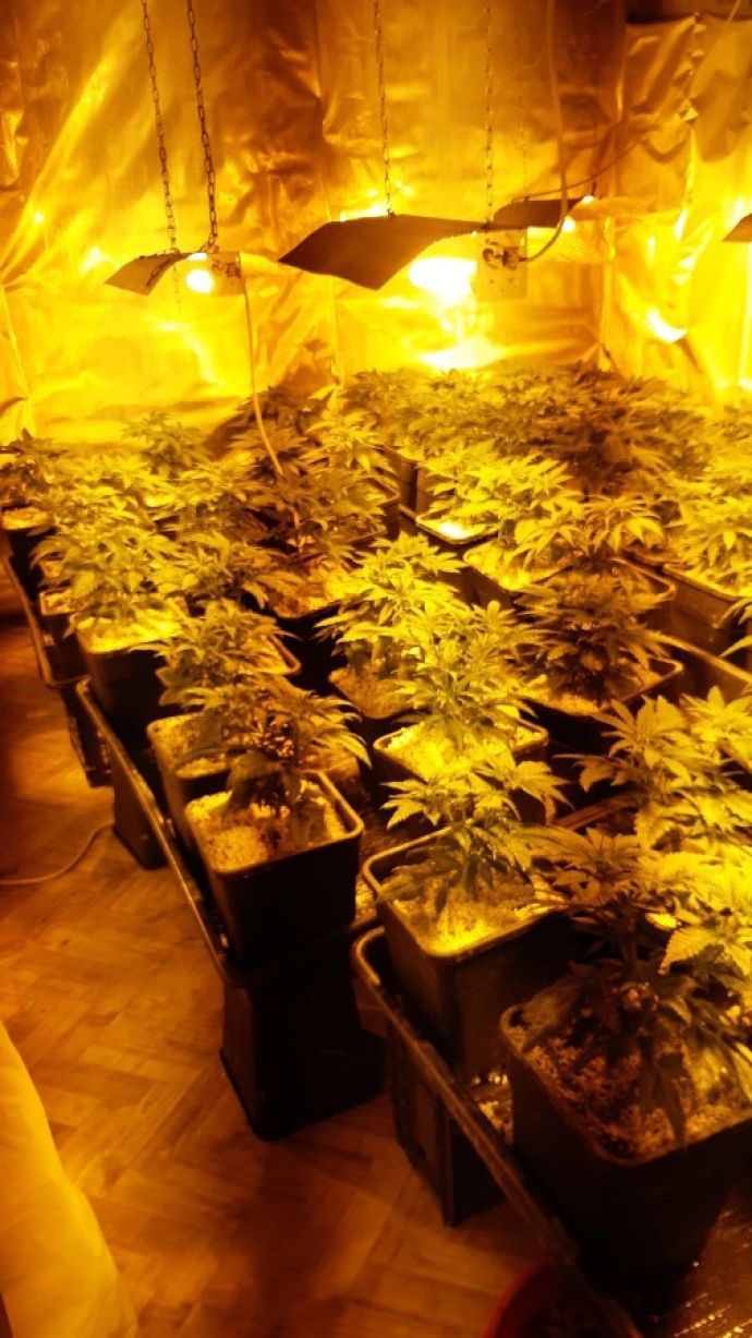 Първият от тях е задържан около 07.50 ч. на 9-и февруари в близост до училище „Св. Княз Борис І“ в к-с „Възраждане“. При извършения личен обиск е открита и иззета марихуана. Претърсен е обитавания от 31-годишния мъж апартамент на ул. “Св. Климент Охридски”, като на тавана е открито помещение, пригодено за оранжерия за отглеждане на конопени растения. Намерено и иззето е цялостно оборудване и съоръжения - кварцови лампи, трансформатори, таймери, въздуховоди, вани и туби с течни торове, както и близо сто пластмасови саксии с конопено растение с приблизителна височина от 30-40 см. Мъжът е задържан с полицейска заповед за задържане за срок от 24 часа.