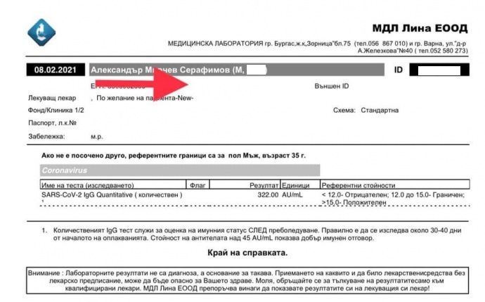Няколко седмици, след като получи и втората доза от препарата на Pfizer/Biontech, д-р Серафимов има високи количествени стойности на антитела срещу COVID-19. Той е споделил резултата си от теста с шеговития коментар: „Едни си показват телата, други антителата”.![]()