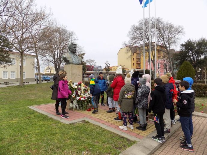 Днес, бюст-паметникът на Васил Левски в град Поморие бе отрупан с венци и цветя, по повод 148-ата годишнина от обесването му.