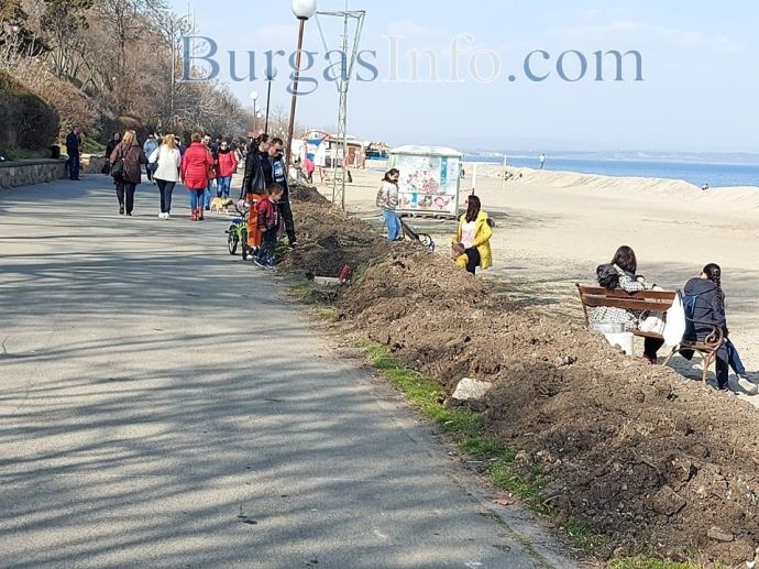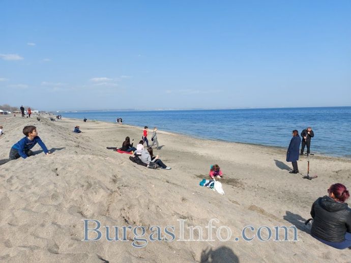 Хиляди бургазлии излязоха в Морската градина и по плажа, след като температурата днес беше пролетна – 23 градуса. Хората свалиха якета, и обувки и се радваха на пясъка и слънцето.