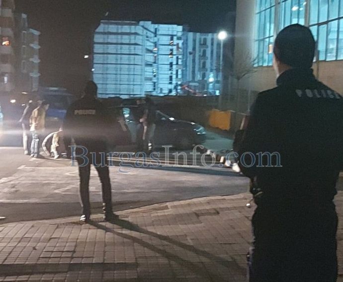 Полиция спря лек автомобил „Сеат Ибиза”, в района около басейна в бургаския ж.к. „Меден рудник”. В него са пътували трима младежи, казаха очевидци. В момента на място тече претърсване и оглед, като пристигнаха екип криминалисти, както и служители на Четвърто РУП, които отцепиха района. Има задържан млад мъж, като в момента тече обиска му.