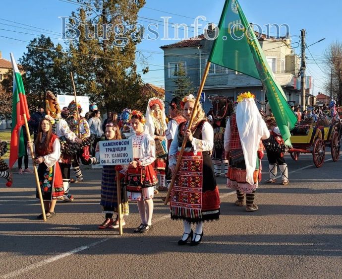 Кукери шестваха в центъра на Камено, за да прогонят злото и болестите. И тази година традицията беше изпълнена при спазва на противоепидемичните мерки. Атрактивното дефиле завърши на площада, въпреки че ритуалите бяха съкратени, заради необичайната обстановка.