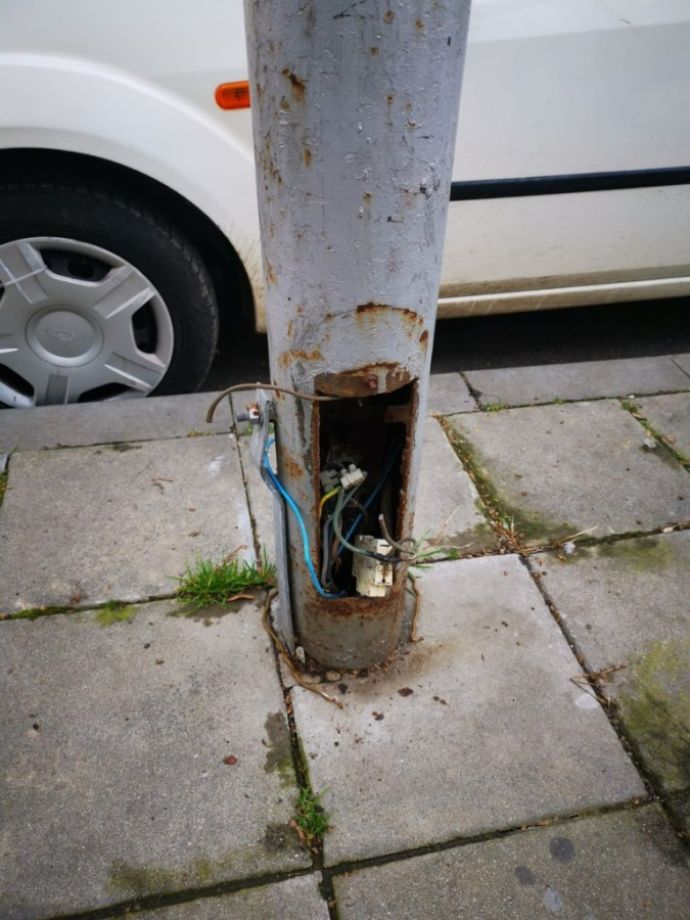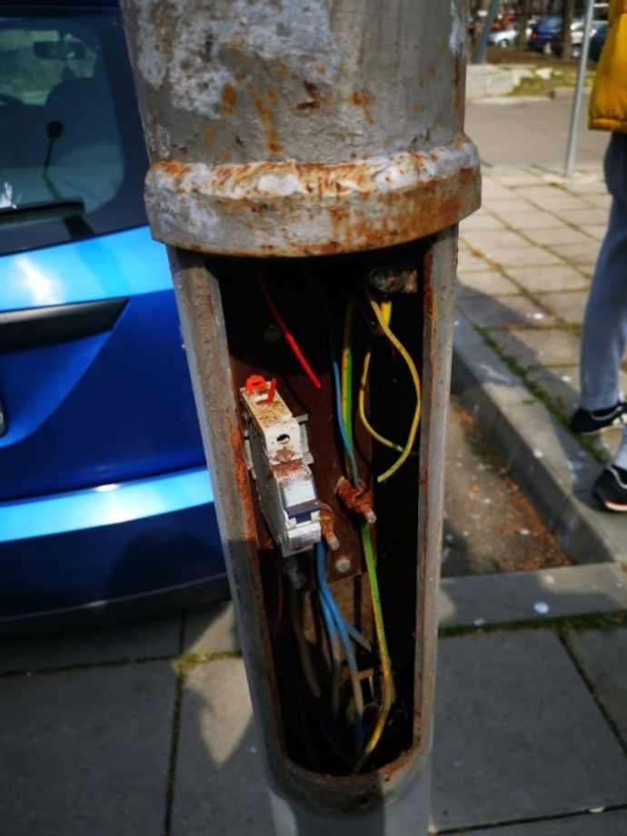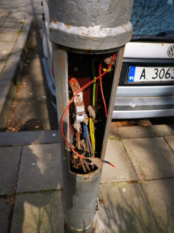 Защото се оказа, че някой умишлено е изкъртил капаците и нарязал кабелите на повече от 30 осветителни стълба!