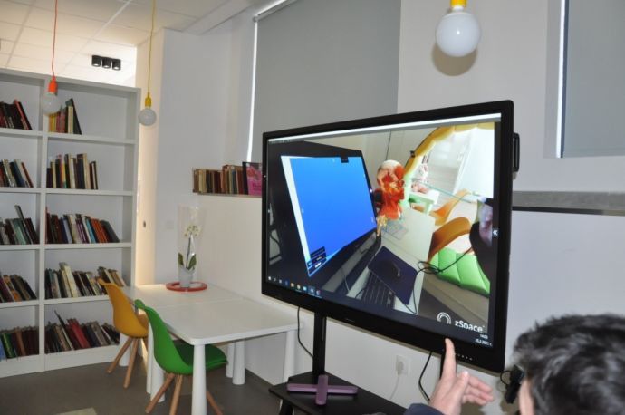 Там е и Z space стената. Тя е истинско бижу, когато става въпрос за Виртуална реалност, 3D и интерактивност, тъй като предлага три нива на възприятия на представеното съдържание. Затова и тя е сред най-актуалните устройства за иновативно обучение по STEM дисциплини. IT специалистите на библиотеката ще демонстрират част от възможностите на модерната технология, като холограмни изображения и добавена реалност.