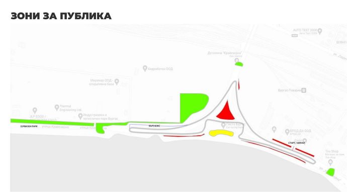 На 8-и и 9-и май околовръстният път на „Крайезерна” ще бъде затворен, както и подходите към улицата. Обходният път остава ул. „Одрин”. Провеждането на състезанието няма да пречи на останалия трафик в Бургас. Организаторите апелират бургазлии да използват градския транспорт, за да отидат до състезанието, спестявайки си главоболия къде да паркират.