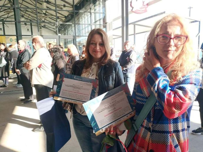 „Ще кажа това, което майка ми би казала: „Мечтайте, рискувайте и четете””, заяви той, след като прие наградата, която му бе връчена от изп. директор на Пристанище Бургас Диян Димов. Нели получава 400 лв. и книги, които издателство „Либра Скорп“ осигури. Бургаското издателство подари на всички отличени книги на любими бургаски автори.![]()