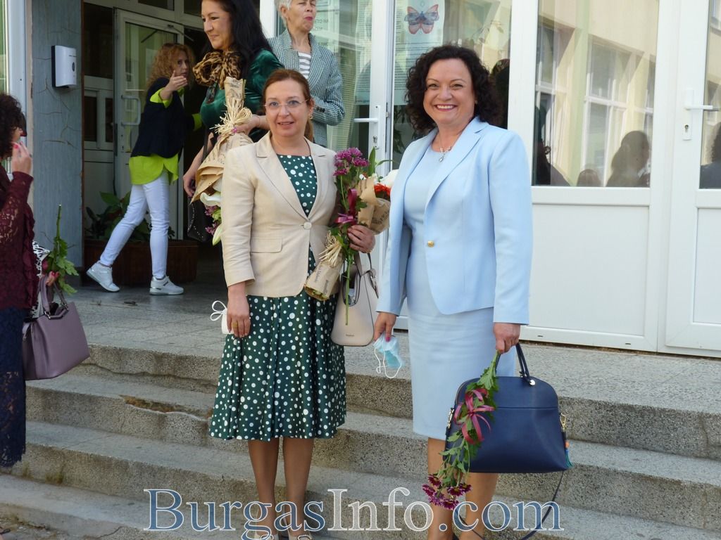 На изпращането присъстваха и министърът на труда и социалната политика в предишния кабинет Зорница Русинова и доскорошният депутат Ивелина Василева. И двете са завършили АЕГ „Гео Милев”.