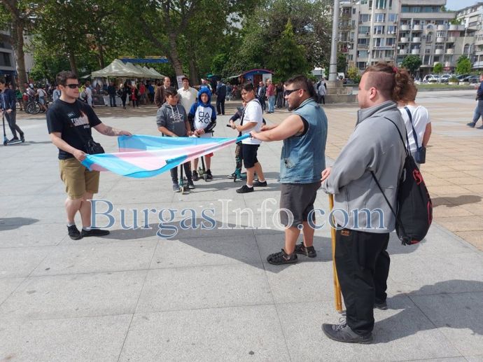 Първи искри прехвръчаха между групички, пристигнали да участват в гей парада „Бургас прайд” от една страна, а от друга - шествието в защита на традиционното хетеросексулано семсйтво. Докато привържениците на традиционните ценности се събираха в долния край на площад „Тройката”, покрай тях премина групичка с цветни коси. „Уроди” - от една страна, а от друга - „Агресори”, бяха репликите, които си обмениха двете компании. Полетя и вода от пластмасово шише, както и плюнки.![]()