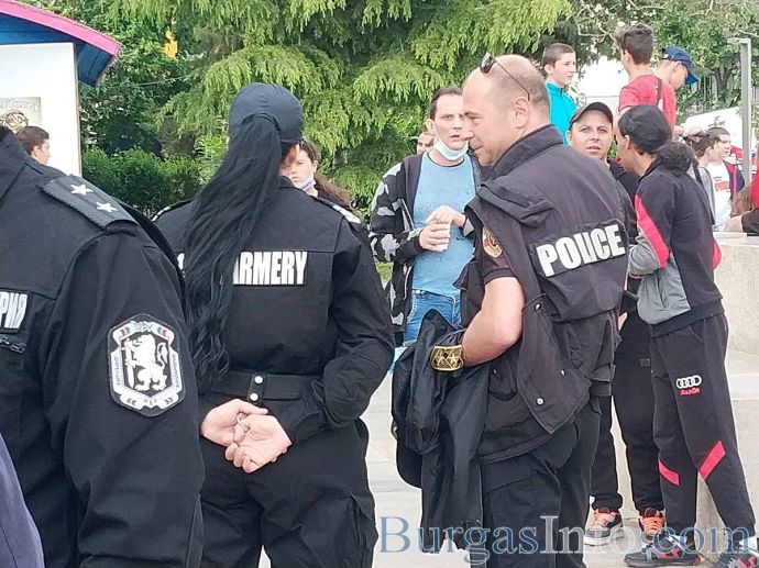 На място е директорът на ОДМВР Бургас старши комисар Калоян Калоянов, както и директорът на Охранителна полиция ком. Неделчо Рачев.