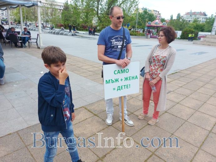 От друга страна сборният пунк, на привърженищите на традиционното семейство, се събират и семейства с деца и настояват, че любовта е именно между мъж и жена.![]()