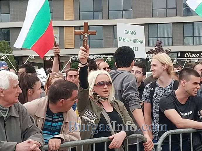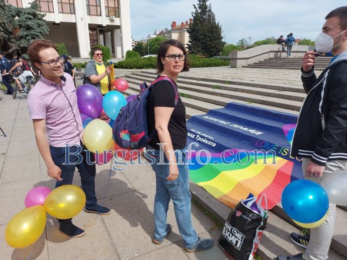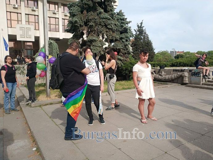 Първият гей прайд в Бургас в момента се провежда на площад „Тройката”, който се превърна в сцена за демонстрация на две противоположни страни – ЛГБТ общността от една и защитниците на традиционното семейство, за които то е от мъж, жена и дете. Първите са между 20 и 30 и са предимно тийнейджъри, а другите са стотици. Напрежението постоянно ескалира, като към гей прайда полетяха краставици, яйца и димка. А знамето в цветовете на дъгата, символ на гейовете, беше изгорено от представител на ОЗБГ.