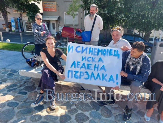 Протестиращите с ирония поискаха кметът Лапчев да построи не хотели, а ледена пързалка. "За какво ни е море, искаме като Банско", с чувство за хумор казаха те, опирайки се на намеренията на кмета Лапчев в Царево да има спортна зала с ледена пързалка.