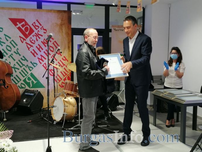 Кметът Димитър Николов отличи заслужили културни дейци в навечерието на 24-ти май. Церемонията се проведе в новия дом на книгата в Бургас.