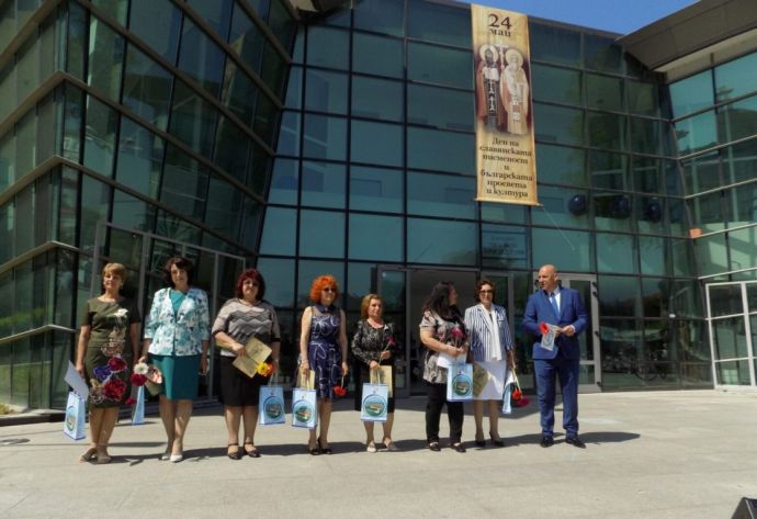 След празничните слова на кмета Алексиев той връчи почетни грамоти на бивши директори на училища и детски градини, на учители и културни дейци за дългогодишна, цялостна и високопрофесионална дейност в системата на предучилищното и училищно образование в община Поморие.