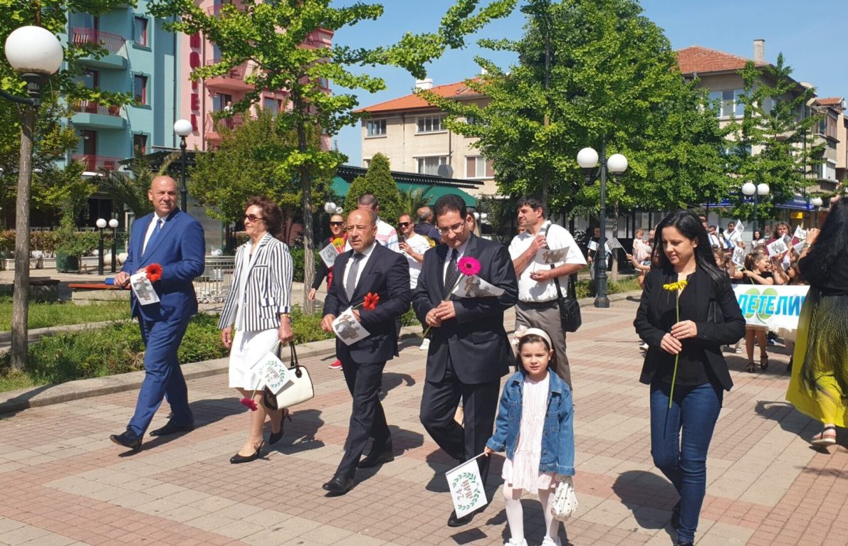 В Поморие Денят на светите братя Кирил и Методий, на българската азбука, просвета и култура и на славянската книжовност – 24 май, започна с празнично шествие на учители, ученици и културни дейци, съпроводени от тържествена музика, в изпълнение на Общинския духов оркестър.