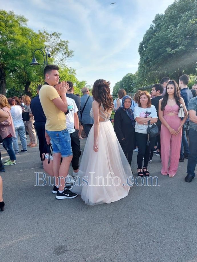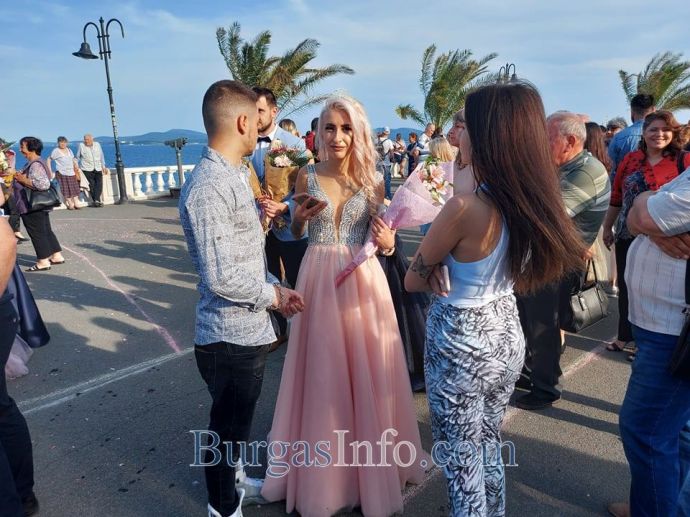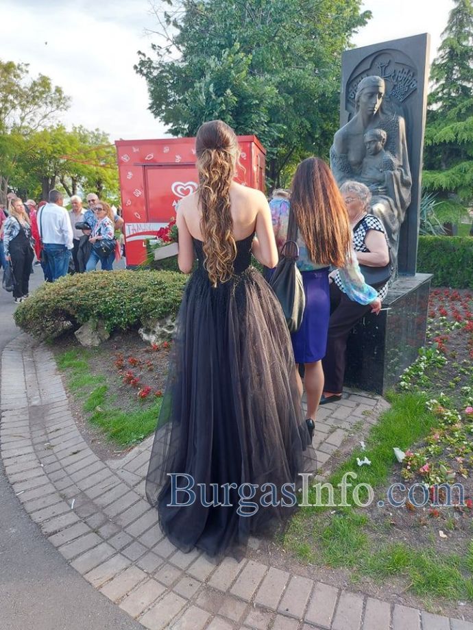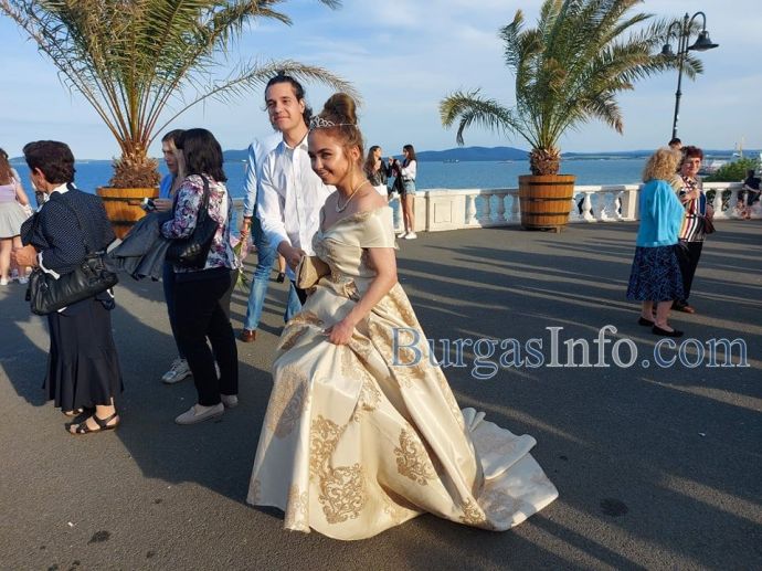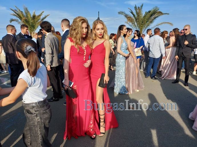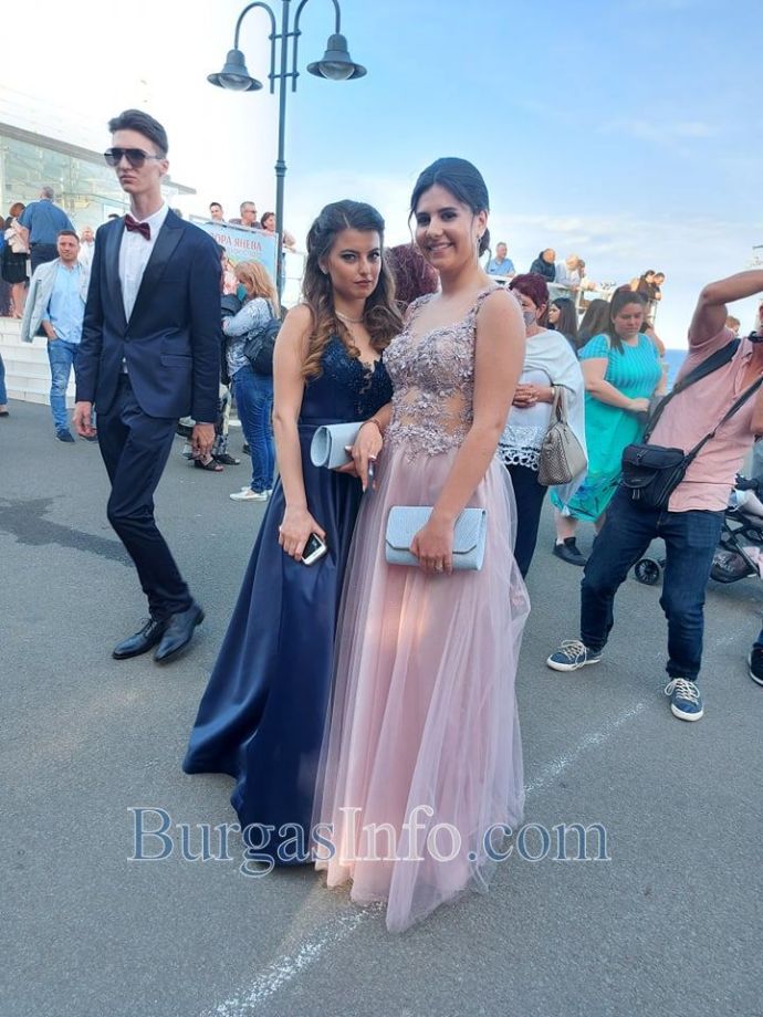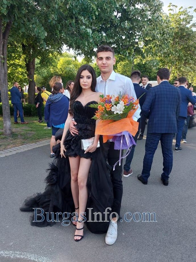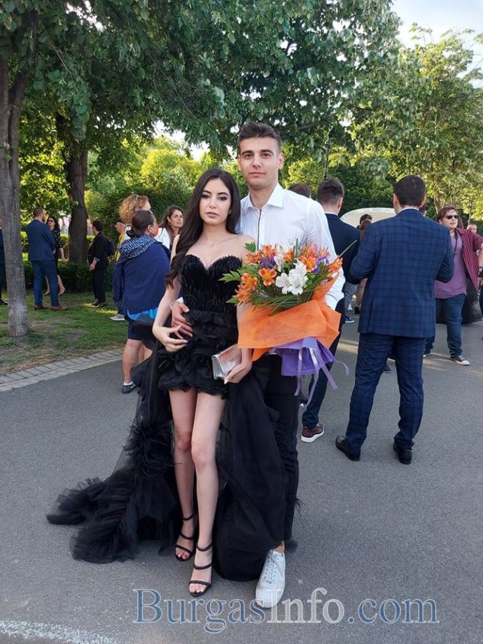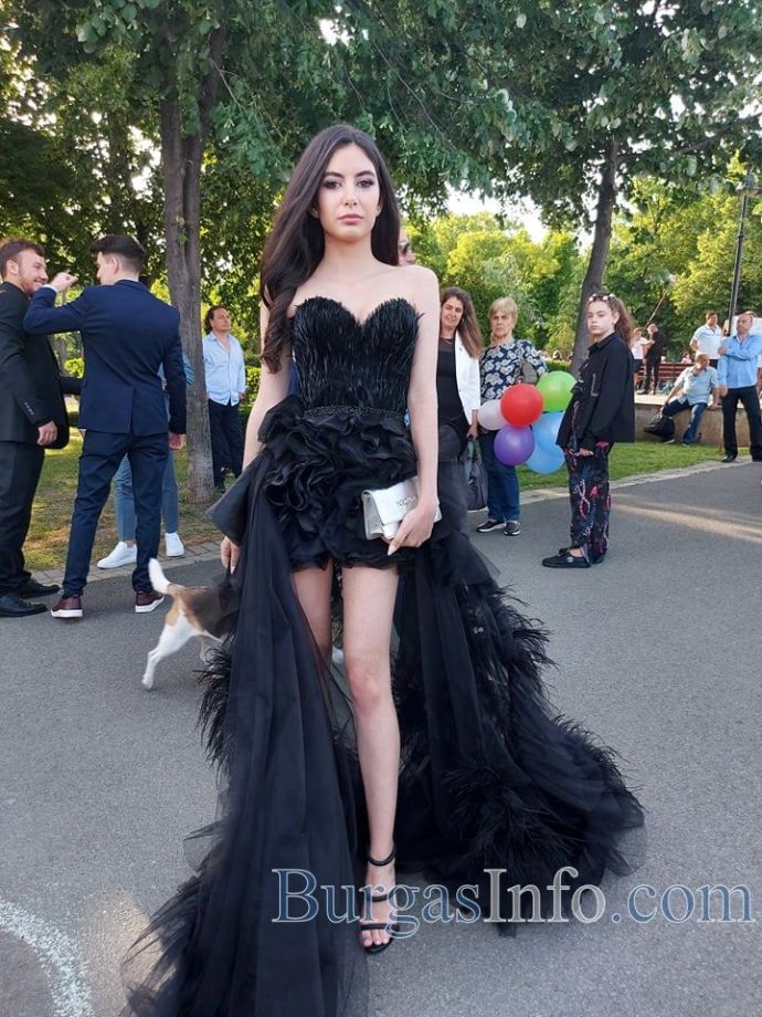 Рокли с шлейфове, загадъчни цепки и ефектно разголени рамене - това беше преобладаващият избор на младите дами, които се събраха на терасата край Морското Казино, за да отпътуват за своя бал. Там беше сборния пункт на възпитаниците на Английската гимназия и Музикалното училище, където по традиция са най-артистичните млади хора. Сред абитуриентите беше и красивата и фина Гергана от Английската гимназия, която е дъщеря на председателя на Комисията по култура към Общински съвет - Бургас и опитен журналист Веселин Пренеров. Гергана беше облечена с ефектна и стилна рокля на дизайнера Стоян Радичев. момичето вече има яснота и за своето бъдеще. За разлика от брат си Мартин, който избра да продължи образованието си в Лондон и да работи в Майкрософт, тя предпочита да учи у нас и да се занимава с фармация.
