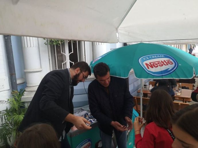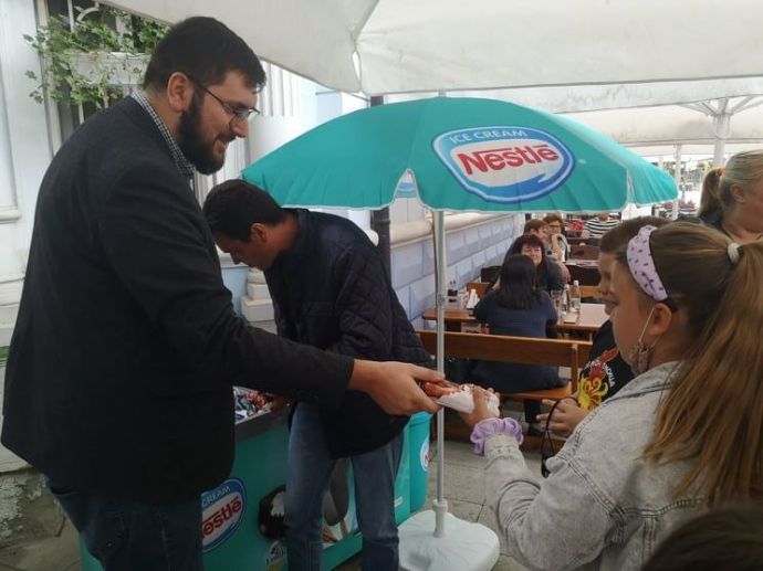 Мястото, където днес часове наред, децата получаваха сладолед, е пред централата на СДС. В изненадата се включи и Дончо Златев, който е регионален представител на СДС за Югоизточна България и член на НИС на формацията. ![]()