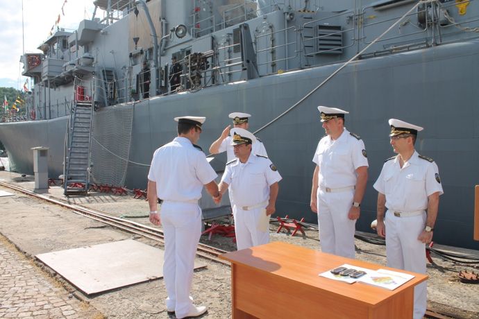 От името на командира на Военноморските сили контраадмирал Кирил Михайлов и лично от свое име, командирът на Флотилия бойни и спомагателни кораби флотилен адмирал Велко Велков изрази своето уважение към професионализма, отговорността и компетентността на военнослужещите от дивизиона, които със своите всеотдайност и ентусиазъм отстояват честта на пагона и пазят любовта към морето и морската професия.