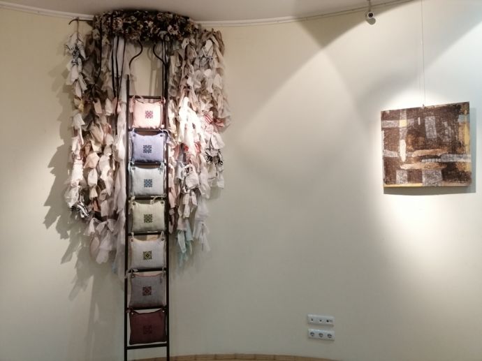 „Този обект се нарича „чакра денс невеста”. Създаден е от желязна стълба със 7 стъпала, като седемте енергийни центъра в тялото ни. Те са в цветовете на чакрите, като авсяка е представена като шевица. Короната на тази „булка” е направена от късчета плат от роклите на моята баба, която също се казва Надежда”, заяви авторката.![]()