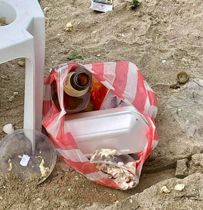 Плажуващи оставиха след себе си куп боклук на пясъка, вместо да го изхвърлят в кошовете на плаж „Крайморие“. Гледката е срамна, като се имат предвид и многобройните претенции, които често се изявяват в социалните мрежи към собствениците на обекти. Подобни кадри показват, че понякога първо трябва да видим себе си и собствените си постъпки.