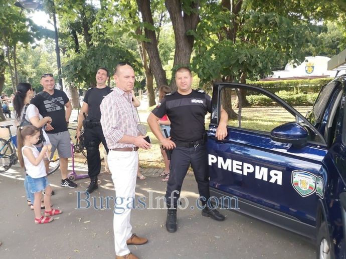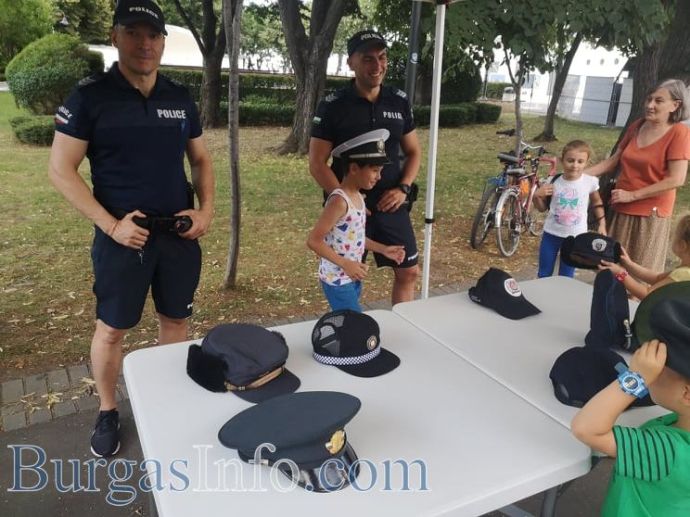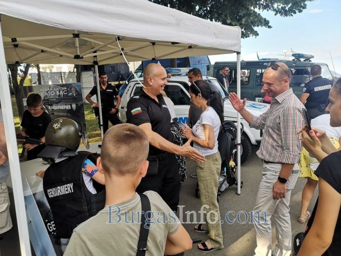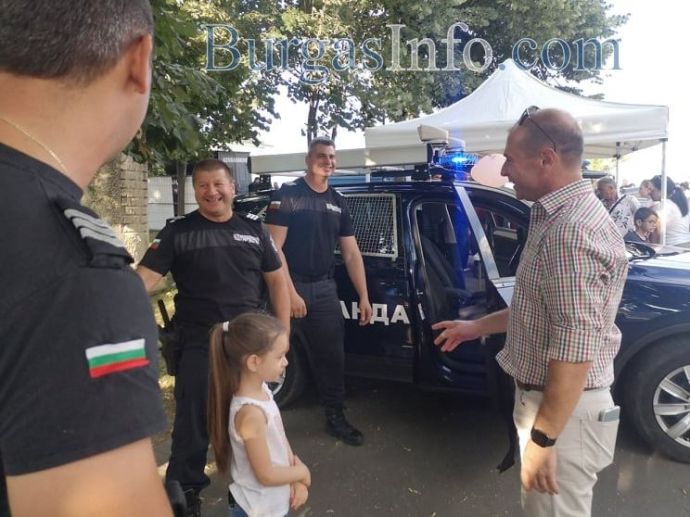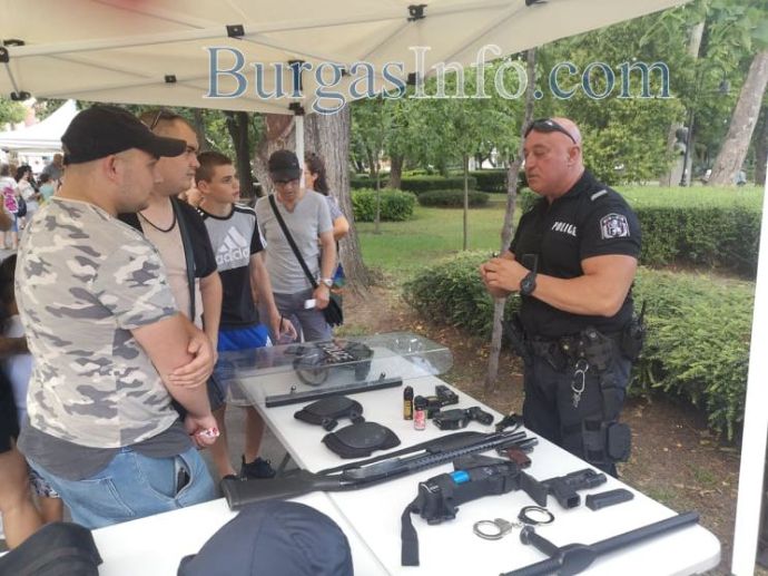 демонстрации на състезателите от Централния полицейски карате и джу джицу клуб – Бургас. Желаещите могат да участват в симулация на изпити за постъпване в МВР / физически и за интелигентност/, да видят как се оказва първа долекарска помощ.