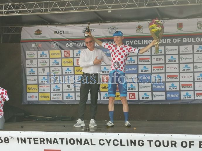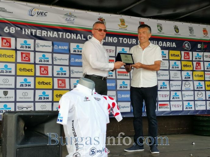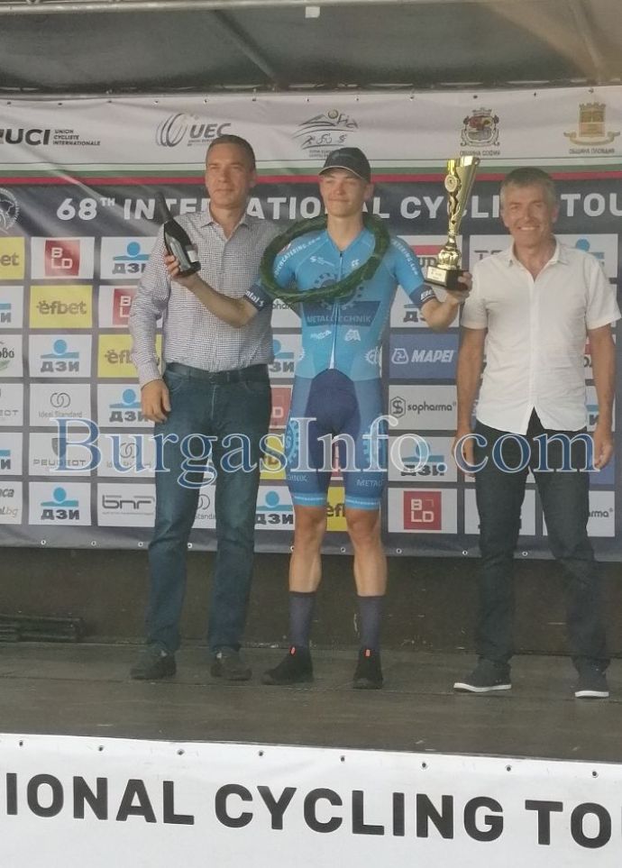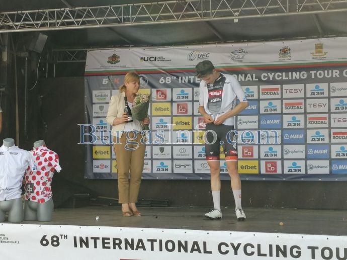 Купата на победителя в етапа връчи кметът на Бургас Димитър Николов, а 21-годишният Михаел Ашенбренер радостно гръмна шампанското.