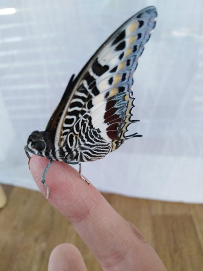 Съжителството между пеперуди и охлюви е доказано безопасно и безспорно вълнуващо за посетителите на изложбата.