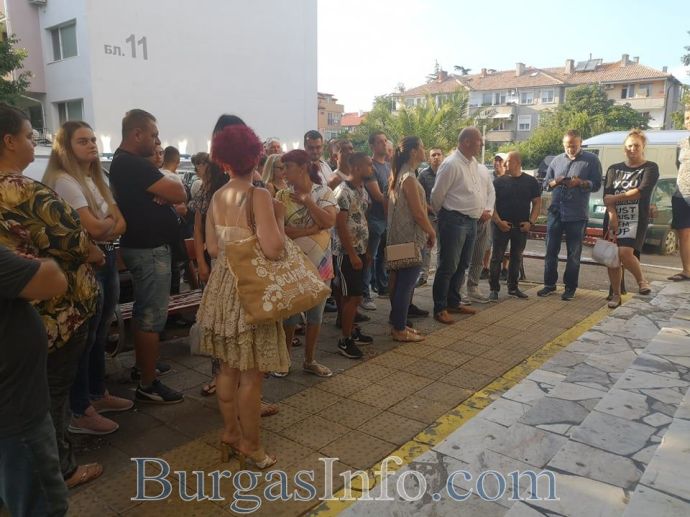 На протеста присъстват кметът на Поморие Иван Алексиев, областният лидер на ГЕРБ Димитър Бойчев и водачът на листата от Бургаски регион Любен Дилов - син. Кметът Алексиев поиска началникът на РУП Поморие Петър Богданов да даде повече информация по случая.