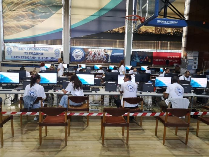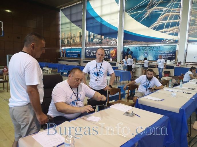 Членовете на Районната избирателна комисия в Бургас вече заеха своите места в спортна зала „Бойчо Брънзов”, където по традиция се обработват резултатите от изборния ден. Мобилизацията на комисията е пълна, като заявката на председателя Михаил Хаджиянев е в 5:15 часа най-късно протоколите да бъдат обработени.![]()