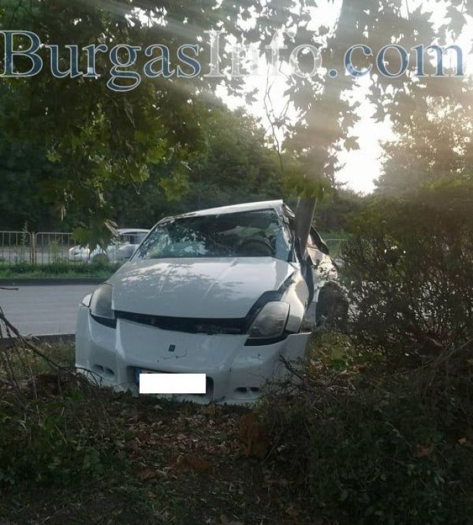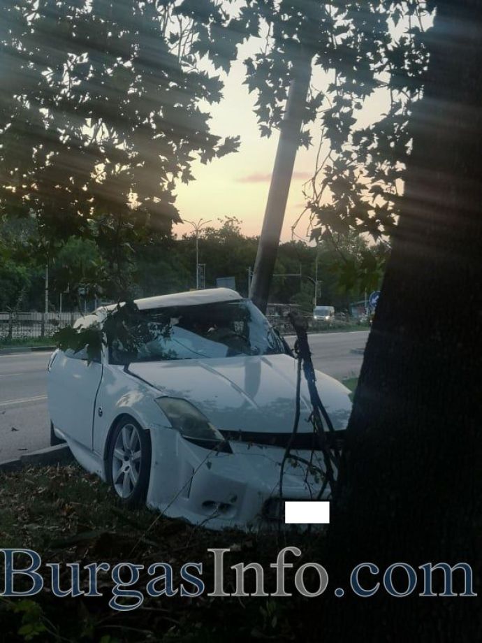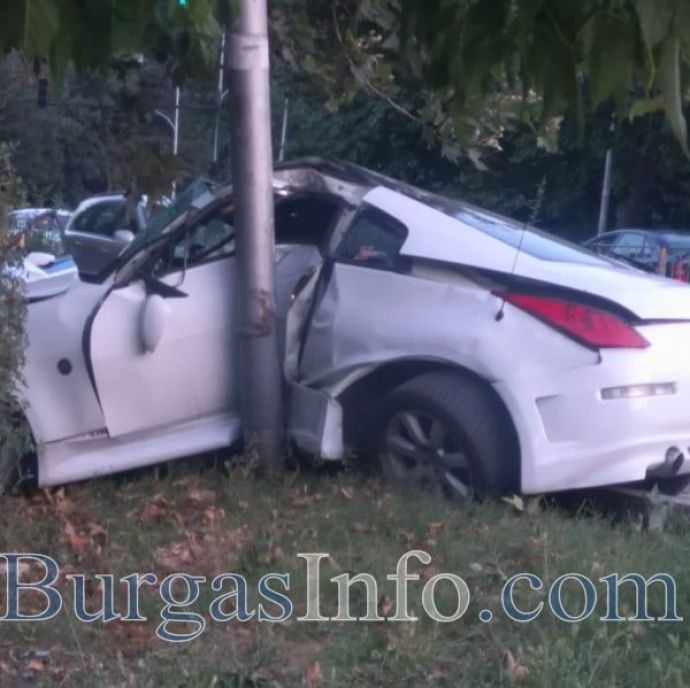 Лек автомобил „Нисан” се вряза в стълб на разклона на бул. „Стефан Стамболов” към УМБАЛ Бургас. Белият спортен автомобил е с варненска регистрация. Той е буквално помлян, а въздушните въглавници са се отворили при удара.