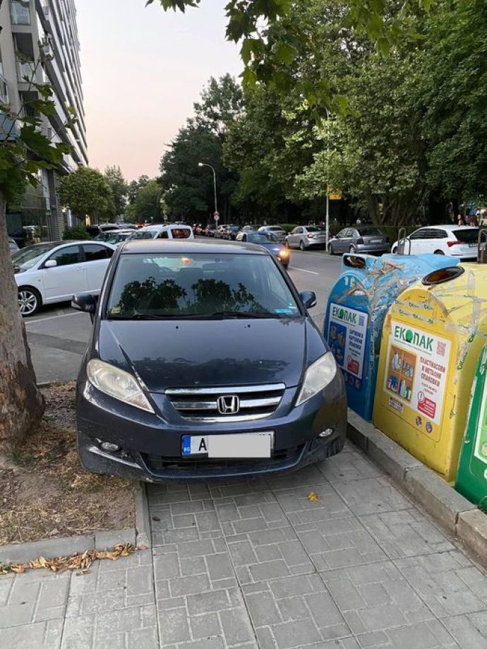 Шофьор предизвика вълна от иронични коментари с паркирането си в района край Морската градина в ж.к. „Лазур“ в Бургас. Тъмният му „Хонда“ се намира на тротоара, до контейнерите за смет от една страна, а от другата има зелена площ с дървета. С това той постави очевидци в учудване как е излязъл и дали не е искал да изхвърли колата си, но контейнерите са се оказали тесни за нея. „Минах оттам случайно и я видях, като ми направи впечатление начинът на паркиране“, каза бургазлия, който е автор и на снимките.