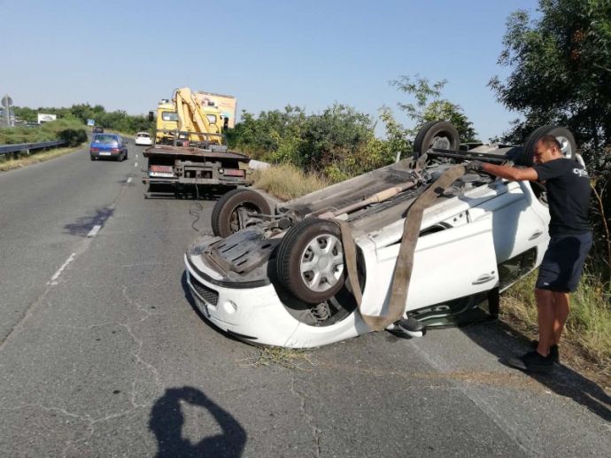 23-годишна поморийка се обърна с лека кола "Дачия" на пътя от бургаския квартал Сарафово. Белият автомобил се озова по таван на пътното платно. Катастрофата е самостоятелна и е станала тази сутрин. По първонаална информация момичето се е отървало без сериозни наранявания.
