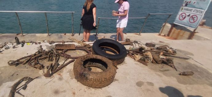 В зрелищната акция се включиха 20 гмуркачи, сред които и представителки на нежния пол. За няколко часа те извадиха десетки килограми желязо, стъкло, пластмаса. Сред най-атрактивните находки - са дрон, мобилни телефони, ръчно изработен нож с кожен калъф, маркови слънчеви очила, машинка за подстригване, а също така автомобилни гуми, вази, бутилки, тухли и др.