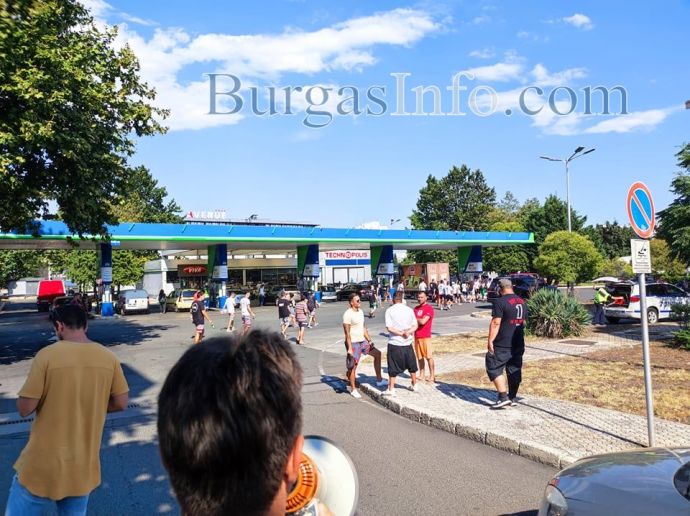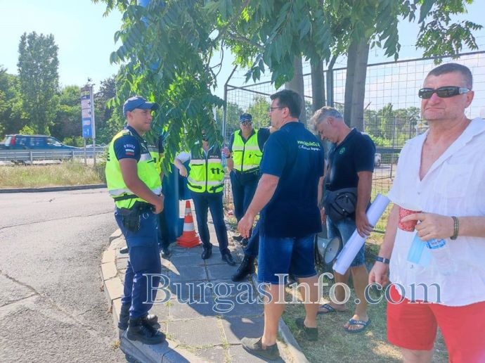 Организаторите изчакваха половин час да се съберат представители на заведения по Южното Черноморие, за да излязат и да затворят двете ленти на платното на излизане от Бургас, в посока София, до кръговото кръстовище край магазин „Метро”. Към 16:30 ч. на място бяха дошли около 50 души, като се очакваха още няколко коли от Слънчев бряг и Поморие.![]()