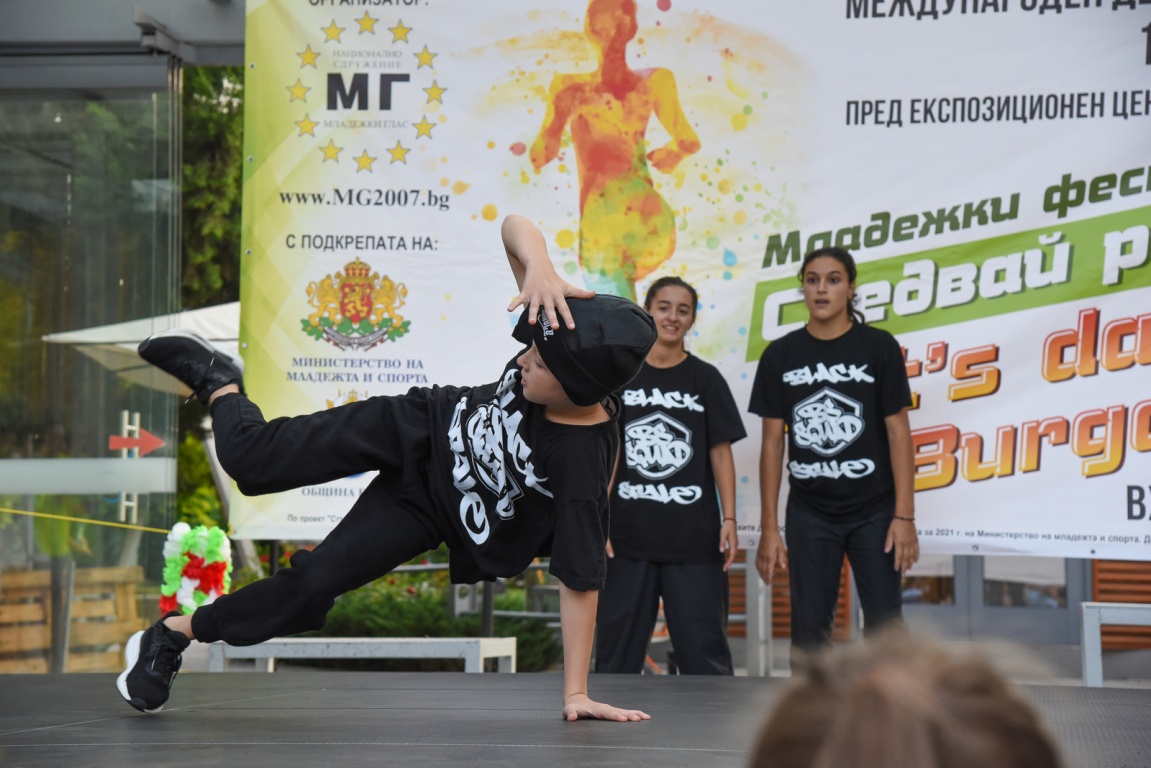 Вълшебно настроение и много танци завладяха Морската градина на Бургас. Национално Сдружение „Младежки Глас” организира за девета поредна година инициативата под надслов „Следвай ритъма 2021 – Let’s dance Burgas“, с подкрепата на Министерство на младежта и спорта и Община Бургас. Младите таланти успяха да демонстрират умения и да включат гостите на града пред Експозиционен център Флора. За всеки участник в събитието имаше изненада и подарък за здравето.![]()