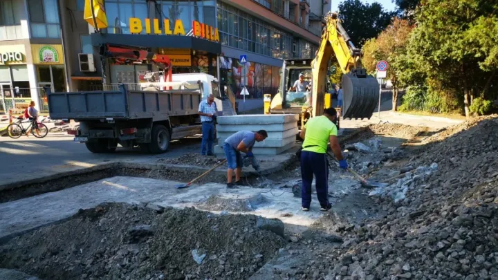 ВиК и Топлофикация започнаха работа на кръстовището до магазин „Билла“ в „Изгрев“. След като те подменят старите тръби и комуникации отдолу, ще дойде ред на Община Бургас, която да изгради нова настилка и тротоари.