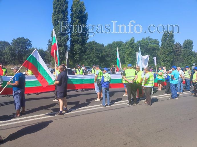 Работници от АМ "Черно море", които не са получавали заплатите си за юли, блокираха входа на Бургас.