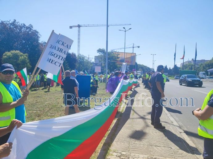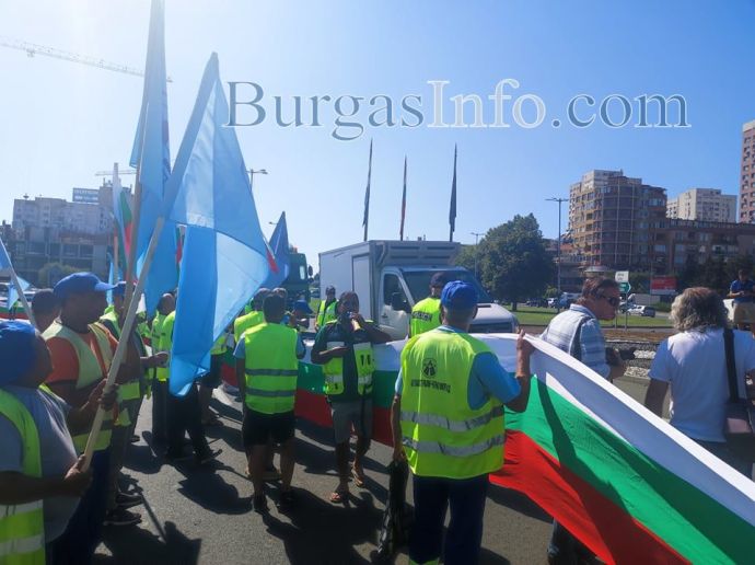Около 10:20 ч. тази сутрин работниците, членове на КНСБ в компанията, излязоха на пътя, като затвориха само дясната лента, водеща към бензиностанция OMV, намираща се на кръговото кръстовище на изхода на морския град. Към момента те се отдръпнаха и развяват знамена край пътното платно. Трафикът към и от Бургас в този час е обичайно натоварен, но не се предвижда допълнително блокиране на движението.