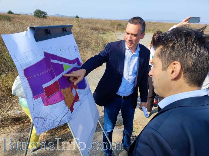 Министърът на икономиката Кирил Петков в момента е на посещение на бившето военно летище в бургаското село Равнец. С него е и кметът на Бургас Димитър Николов, който представя на място намеренията на Общината за развитието на тази зона, като индустриален парк.