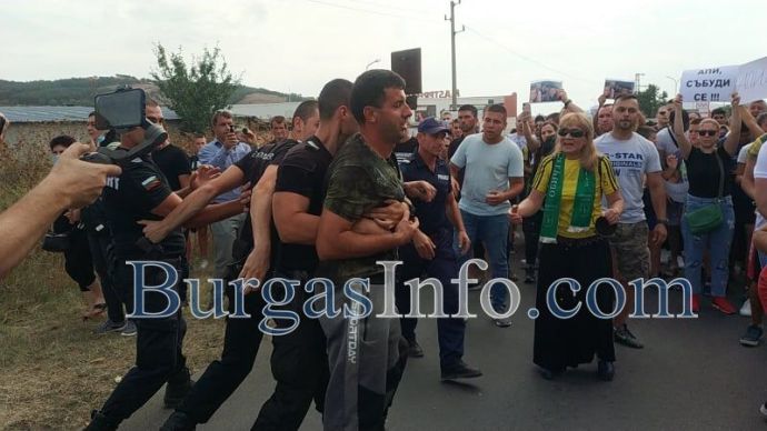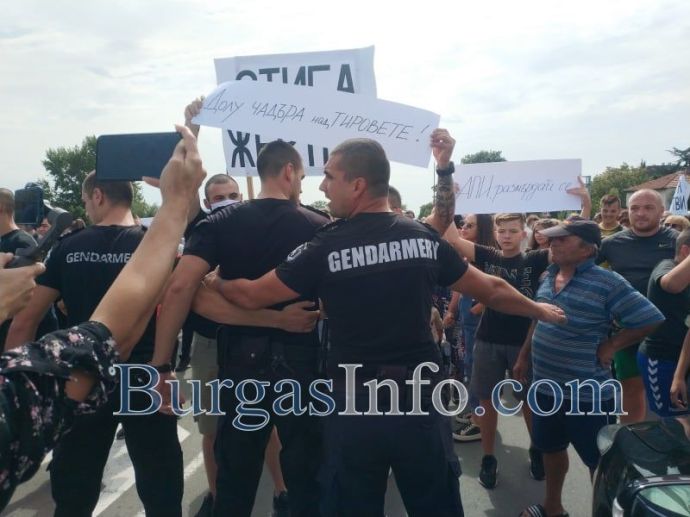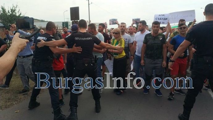 До ескалация на напрежението се стигна на протеста срещу движението на тирове по пътя от Руен към Айтос, като част от хората пробиха полицейския кордон.