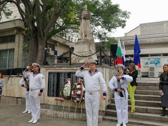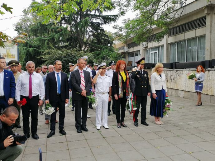 Те отдадоха почит към паметта и святото дело на загиналите в защита на българската независимост с поднасяне на цветя пред Паметника на 24-ти Черноморски пехотен полк, намиращ се пред Военния клуб на бул. „Христо Ботев“ № 48.