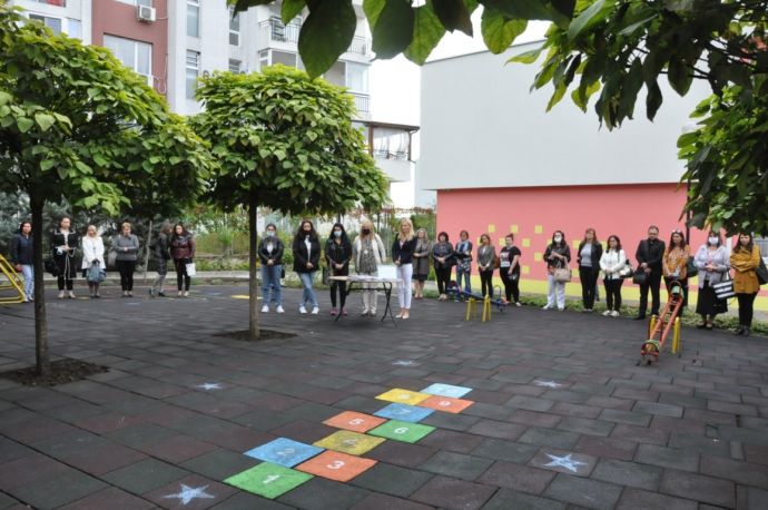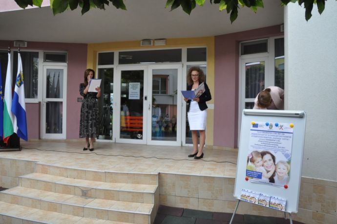 Директорът на ДГ „Надежда“ Мариела Ненкова, изпълнителният директор на фондация „Екип“ Биляна Житарова, социалният работник Гергана Димитрова и специализираният педагог Ваня Кондева представиха в двора на градината в ж.к. „Меден рудник“ резултатите по изпълнението на проекта до момента.