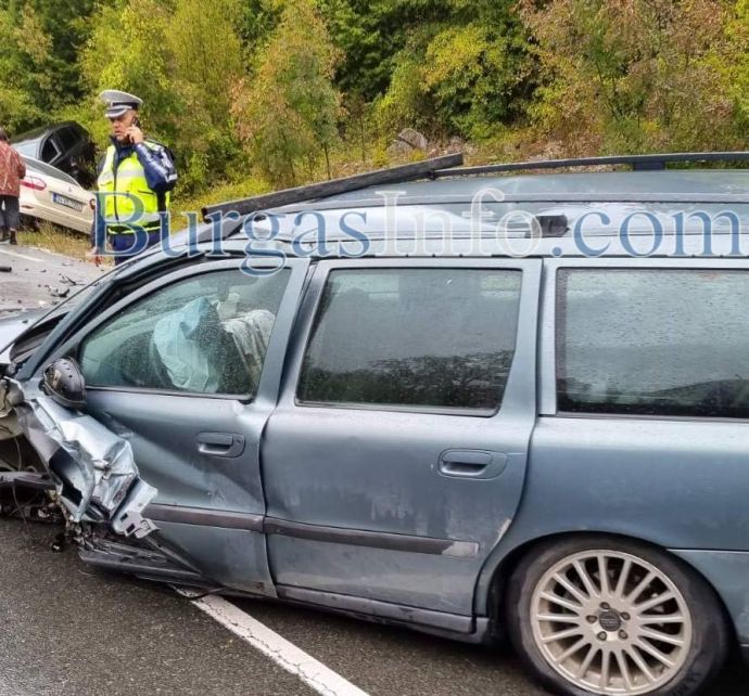 Лек автомобил „Волво“, с бургаска регистрация, е навлязъл в лентата за насрещно движение в условията на десен завой, като блъска последователно движещите се в посока Бургас, „Фолксваген“ с бургаска регистрация и „Рено“ с турска регистрация. Това поясниха от полицията за катастрофата на пътя Бургас-Малко Търново, за която БургасИНФО вече съобщи.