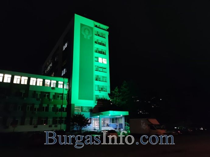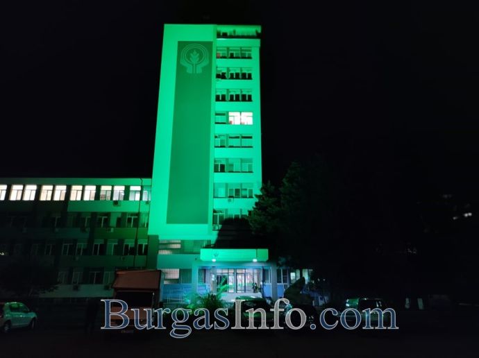 Бургаската болница светна тази нощ в зелено, като причината е кауза, в която Бургас участва в Европейския ден на донорството – 9 октомври. Зеленото е цветът на донорството и трансплантацията, затова в този цвят са осветени тази вечер пет сгради в страната - Националният дворец на културата в София, Домът на културата „Борис Христов“ в Пловдив, крепостта „Царевец“ във Велико Търново, УМБАЛ – Бургас и фонтаните в центъра на гр. Панагюрище.