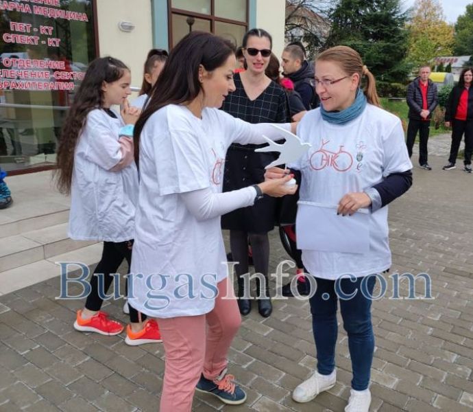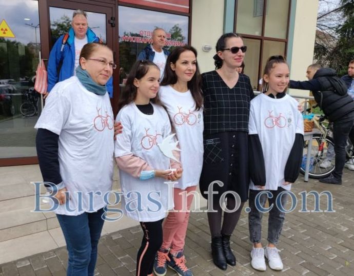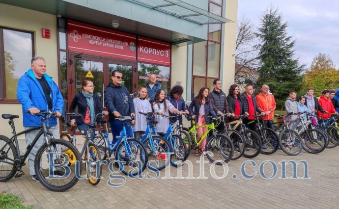 Радетели на надежда подкрепиха благотворителна кауза на Комплексния онкологичен център в Бургас в помощ на онкоболни жени, като се включиха днес в организирания по този повод „Велотон“. Лекари, съмишленици, онкоболни и техни близки се включиха в инциативата, която се проведе днес под патронажа на актрисата Гергана Стоянова. Стартът на съвместното каране на велосипеди, което е част от поредицата „Спортувай с мисия КОЦ – Бургас”, беше даден пред корпус 3 на онкологичния център. В него се включиха д-р Консулова, д-р Миринчев, д-рНиколов, д-р Киселков, д-р Христов, д-р Костов, д-р Дочев, д-р Тусчиева, главна сестра Стоянова, старша сестра Димитрова, както и съмишленици на каузата. Тази година тя е закупуването на перуки за онкоболни пациенти.